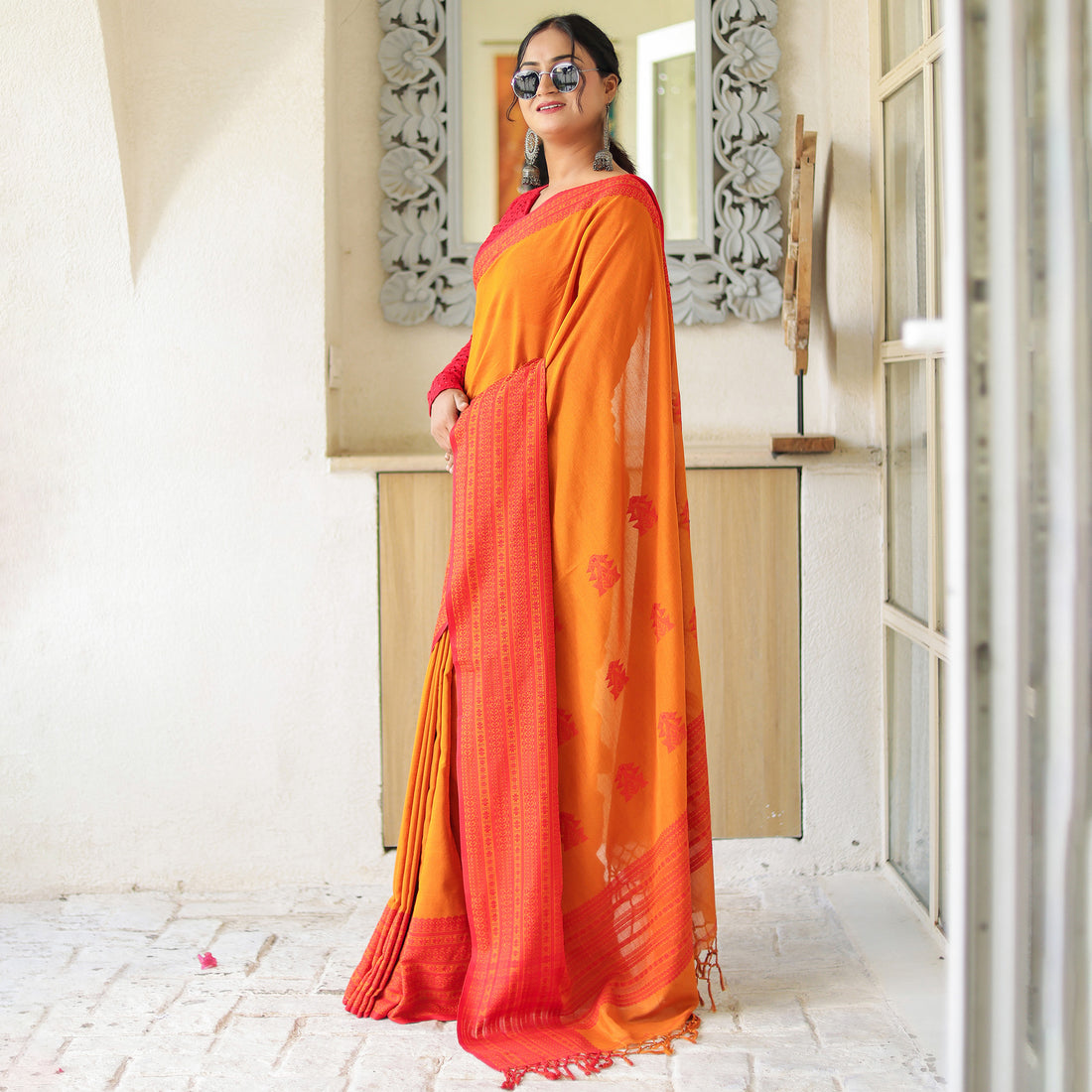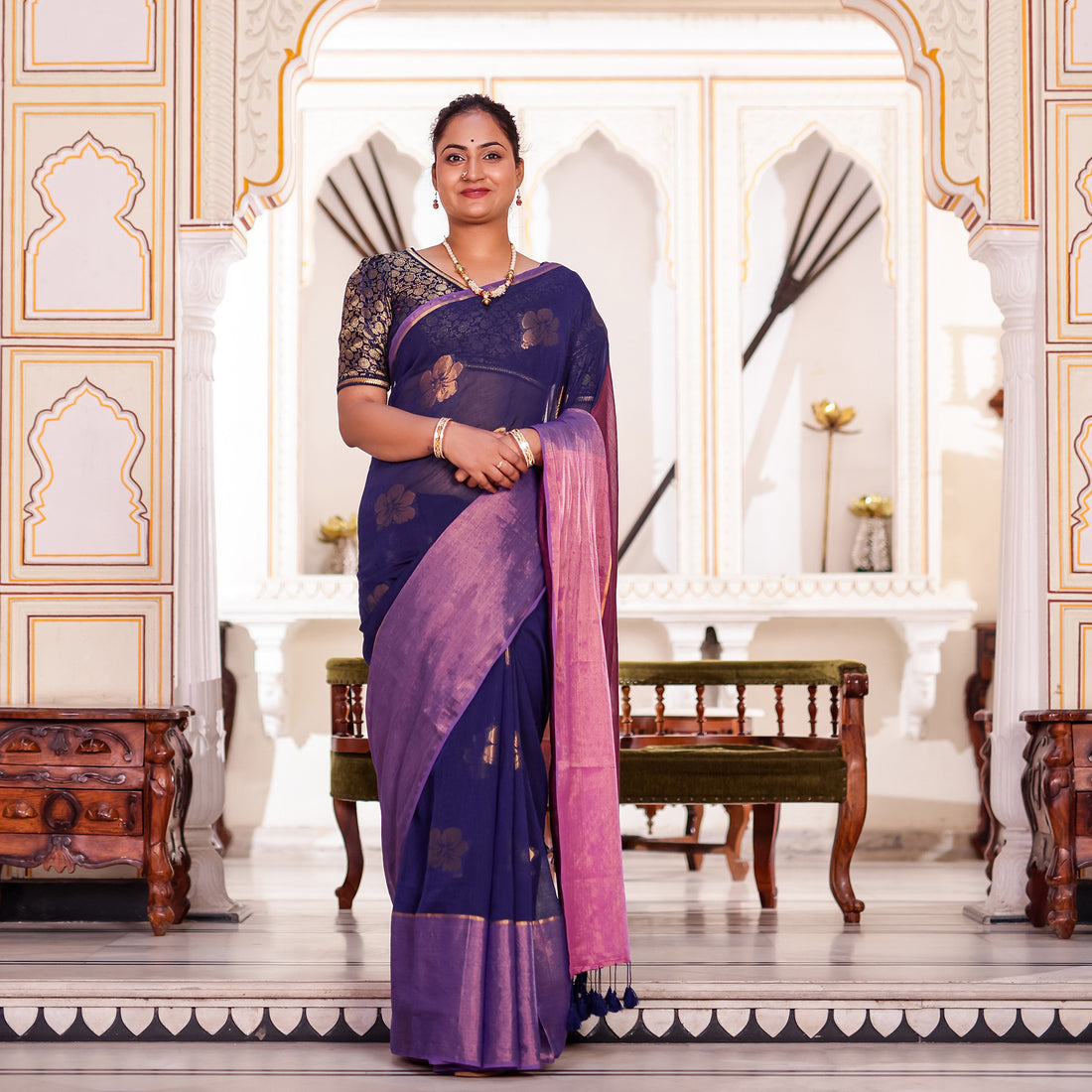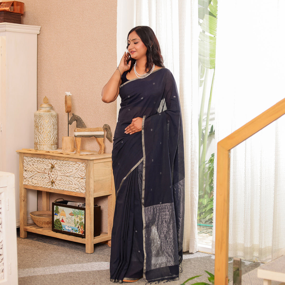 Breathe easy in our Mul Cotton sarees — feather-soft weaves made for comfort and grace in every moment.
