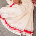 Special Feature: Handwoven red detailing with tasselled pallu